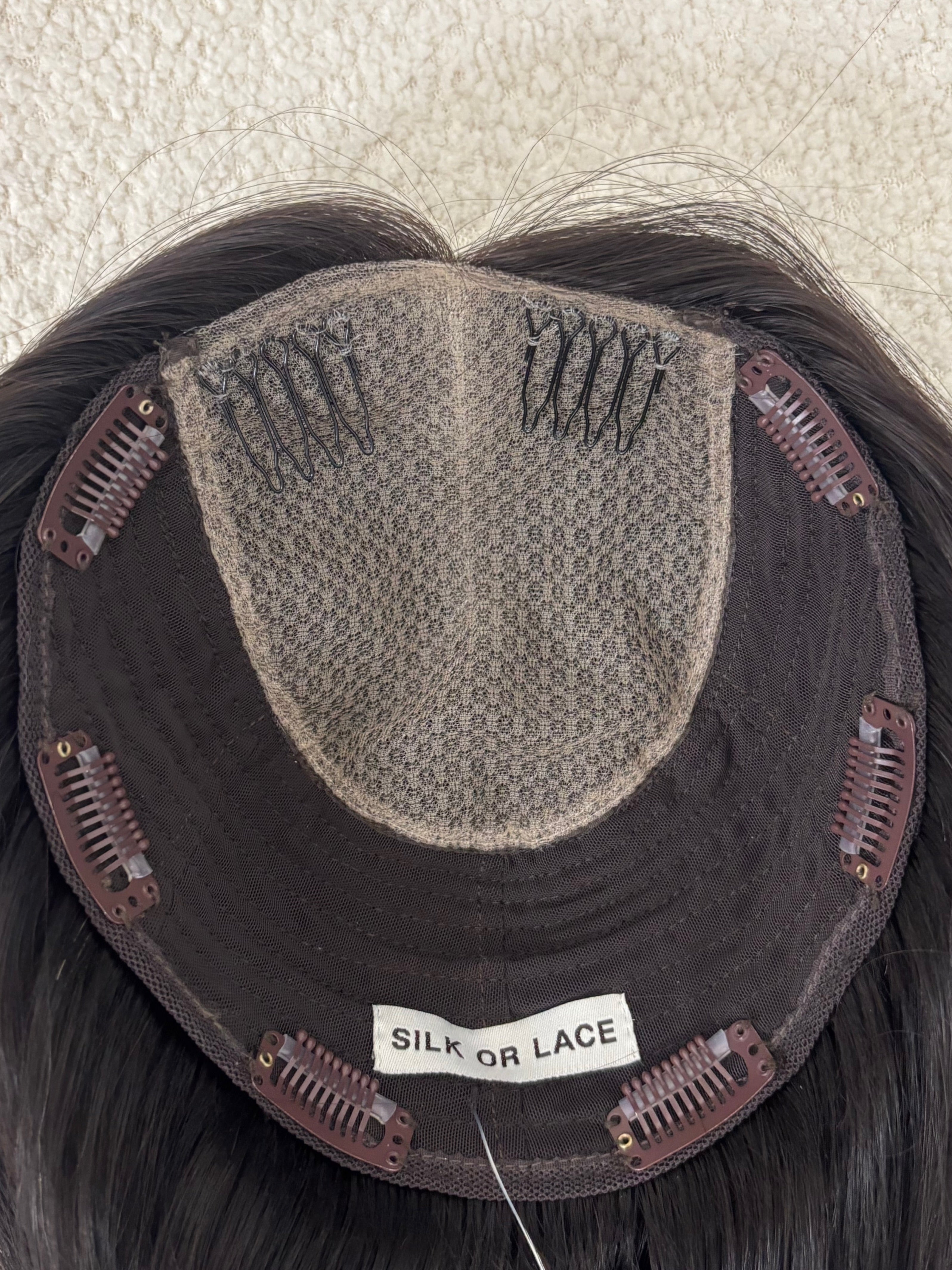 Silk or Lace Collection closed lace hair toppers function as your hair, but better! They are ultra low density, lightweight, and have a paper thin rim for an easy seamless, realistic blend for every day wear. Take note of our carefully designed details, such as our durable double lace, secure mini combs in front, and soft fine Brazilian hair!