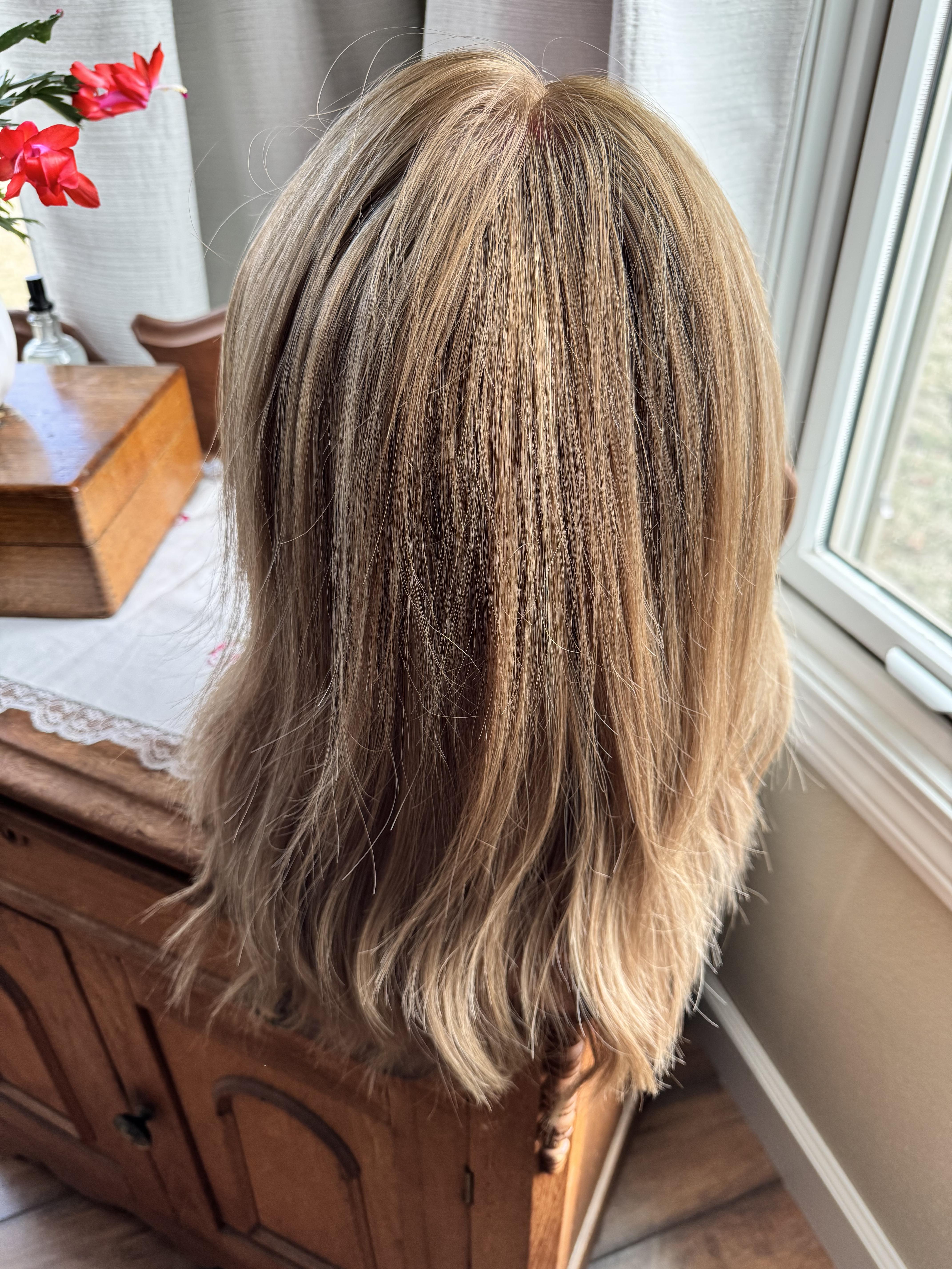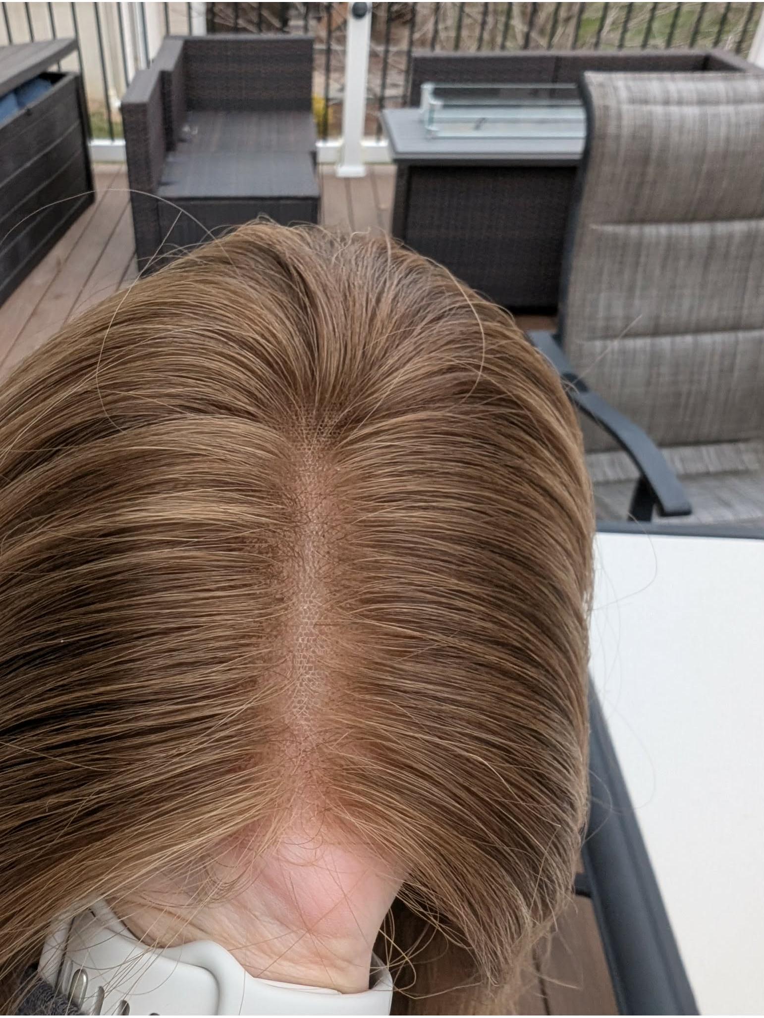 Other: Hair is silky and soft. Lace is cut near hairline with little room for customization. Color has oxidized some. Purchased in 2023 but only worn for special occasions. I am a 22" circumference and this piece fit too small on me.
